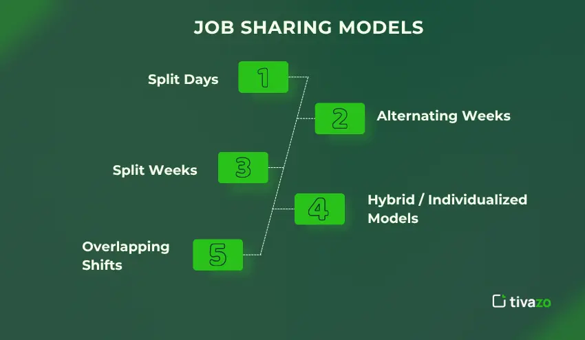 Job sharing can be structured in several ways depending on the organization’s needs and the nature of the role. Understanding these models helps employers design arrangements that work for both the company and employees.
